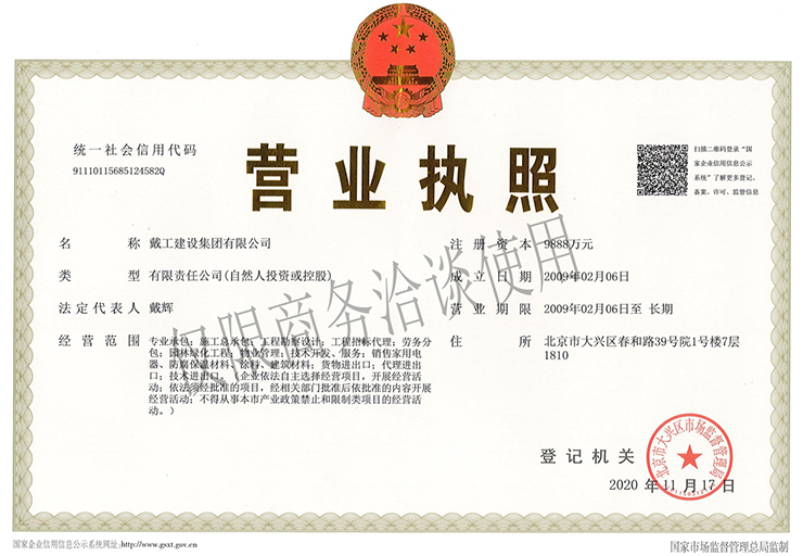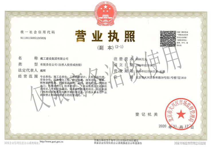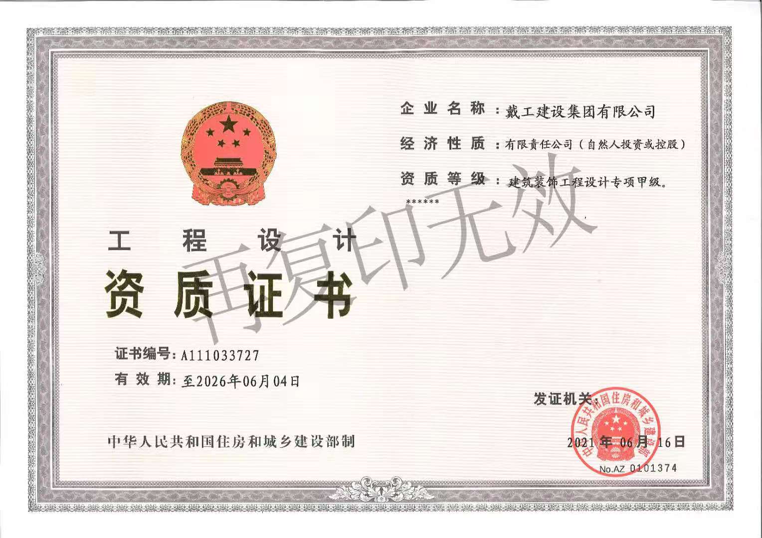 戴工建設(shè)集團(tuán)有限公司,創(chuàng)建于2009年,注冊資本9888萬元人民幣。公司位于北京市大興區(qū)。具有建委頒發(fā)的建筑裝飾裝修專業(yè)壹級,防水保溫工程專業(yè)壹級,建筑幕墻專業(yè)貳級,消防設(shè)施專業(yè)貳級,電子與智能化專業(yè)貳級,特種工程(結(jié)構(gòu)補(bǔ)強(qiáng))專業(yè)不分等級,建筑機(jī)電安裝專業(yè)貳級,環(huán)保工程專業(yè)貳級,鋼結(jié)構(gòu)專業(yè)貳級,建筑工程總承包貳級,建筑裝飾工程設(shè)計專項甲級,展覽陳列工程設(shè)計與施工壹級,展覽展示工程壹級...更多>>